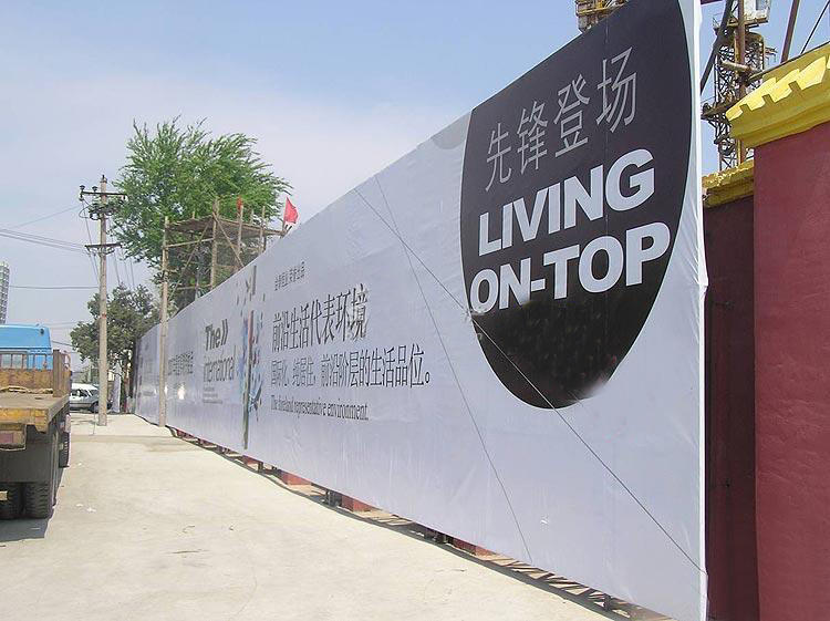 1、户外外光灯布(我们看见的在户外大型的喷绘,此类属于灯光从外面射向喷布。)