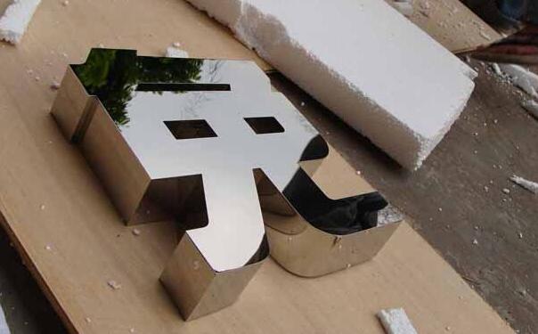 镜面不锈钢字制作工艺即用不锈钢镜面板经过镭射激光或数控水切割后,围边焊接而成。这种字的面和围边有镜面效果,生动活泼,非常漂亮。